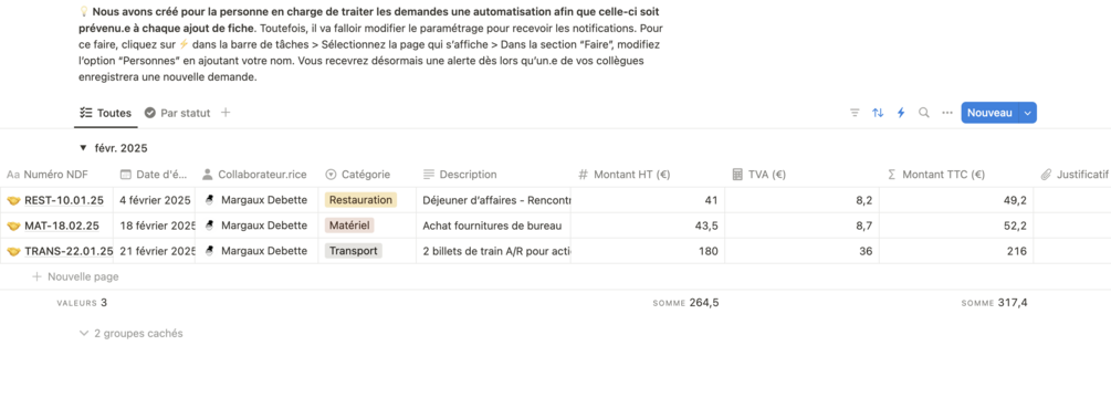 ✅ Un tableau intuitif – Ajoutez une demande de remboursement en un clic 📑